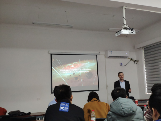Thomas Berndt研究员首先介绍了太阳系的组成并回顾了太阳系的形成历史,然后结合太阳系最初形成的球粒等物质如何聚集到一起等问题讨论了行星核心的形成及其固化过程,最后根据不同天体内部的不同的分化过程,分析了行星磁场与其宜居性之间的关系,并对不同类型陨石记录剩磁的过程和记录剩磁的可靠性进行了相关讨论。