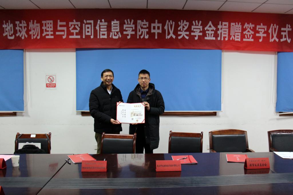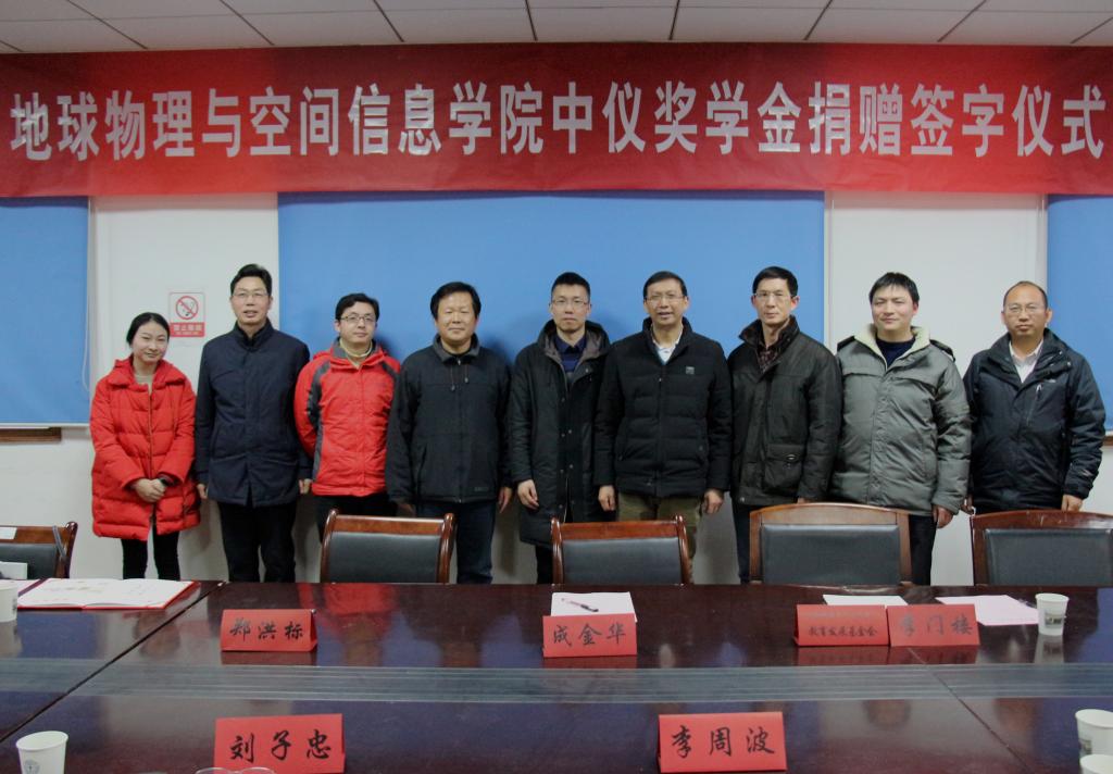 (通讯员 李周波 摄影 祁阳阳)2018年1月5日下午四点,伟德国际VICTOR1946“中仪奖学金”捐赠仪式在物探楼214会议室举行。武汉中仪物联技术股份有限公司董事长郑洪标,总经理助理张婉珈,公司党委副书记、纪委书记成金华,公司教育发展基金会副秘书长李门楼,公司党委书记刘子忠、副书记李周波、教师代表王毅教授、张学强副教授、张世晖副教授、辅导员祁阳阳、公司教育发展基金会工作人员等参加座谈会。会议由李周波主持。