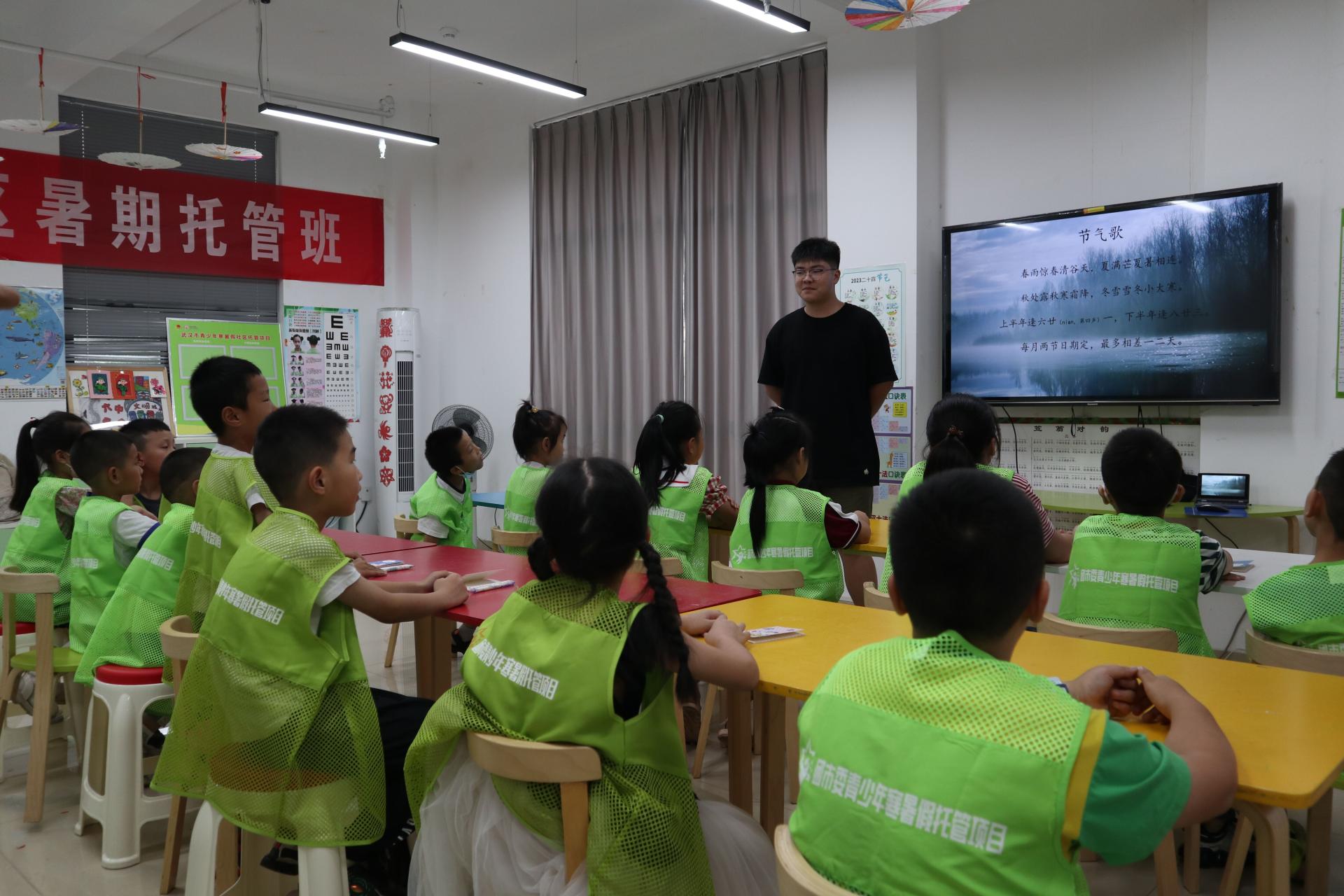 第一周,实践团为托管班孩子们带去中国传统文化及影视鉴赏课程,让小朋友们对二十四节气有一个更深入的了解,了解中国的传统文化。同时志愿者利用电影中展现出来的画面,向小朋友们介绍了反差、隐喻和象征的艺术手法,并向小朋友们强调电影传达给我们的不仅仅是精彩的故事和精美的画面,还蕴含着深刻的道理。