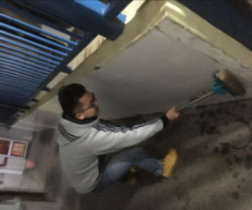 图三、图四:同学在认真清理墙壁、同学一直打扫卫生到天亮