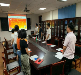 活动伊始,支部书记黄国疏同志带领全体成员齐唱中华人民共和国国歌,歌声激昂,燃起了支部成员的爱国烈火;组织委员马向志同志带领大家重温了入党誓词,字字铿锵,彰显出支部成员的坚定信念。随后,全体同志集中学习了党章,力争学而懂、学而信以及学而用。