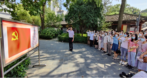 在中央农民运动讲习所,公司党委书记马彦周同志带领教工党员重温入党誓词,并围绕农讲所成立的背景、发展历程以及为新中国诞生做出的贡献等方面,为全体党员上了一堂生动的党课。他号召广大党员在教书育人的工作过程中,牢记立德树人根本任务,坚定为党育人、为国育才初心使命,树牢 “四个意识”、坚定“四个自信”,做到”两个维护“,将党的发展历史落实到课程思政中。
