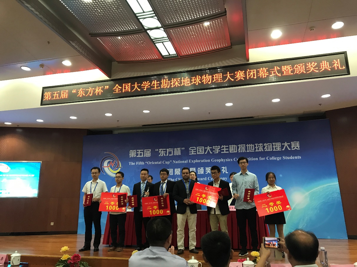 来自东方地球物理公司的专家组成的评审委员会,根据参赛团队的资料处理成果剖面展示、答辩和笔试3项环节综合评定团队成绩。经各分赛区初赛及最终决赛,评选出特等奖1组、一等奖9组、二等奖20组、三等奖56组、优秀作品奖51组、成功参赛奖42组、优秀组织奖9个。