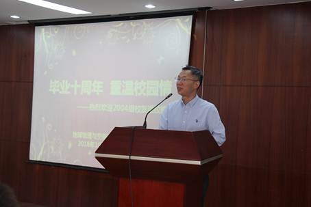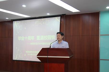 俎德宽、周常委、张衡、尹新义等四个毕业班级员工代表先后发言。他们幽默风趣地回忆了在校学习时的种种往事,感谢老师们当年在学术素养上的悉心指导和人生道路上的点拨,感谢往日的同学在学习和生活中给予的帮助。