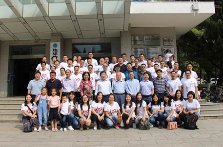 会后,参会师生物探楼前合影留念,随后按班级举行班级同学座谈会。