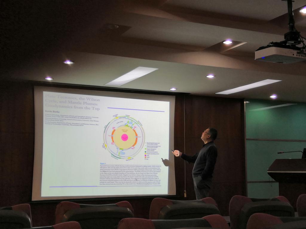 於文辉教授首先结合地表热点玄武岩年龄及超级地幔柱Jason与Tuzo的空间结构,讨论地球深部物质底劈运动现象及特征。然后从发电机假说出发讨论地球磁场产生的根源,论证超级地幔柱运动与地磁极漂移的关系。接着从流变地球介质模型出发,讨论声子晶体理论中横波禁带模型对揭示外核地震波动力学特征的作用与意义。最后总结指出,对于低密度流变态声子晶体外核模型,可能存在微弱的S波踪迹。