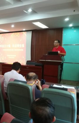 毕业生代表和老教师代表先后发言。毕业员工代表张宗胜站在台上,重新以一个员工谦逊的态度为自己昔日恩师讲述自己30年来的经历,或成就斐然,或略显平凡,但都受到了老师们的一致肯定。老教师潘玉玲表达了注重健康、廉洁奉公、守护家庭、珍惜时光、继续奋进等美好期盼,年近耄耋却依旧心怀国家,心系学子,让人动容。85级原辅导员、现任自动化公司党委书记董浩斌发言。他回顾了当年与员工打成一片的种种往事,感叹岁月之蹉跎,同时也表达了始终不变的物探人情怀让人敬重。