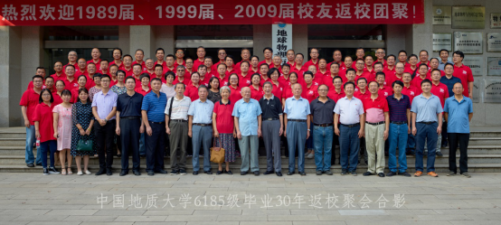 会后,原物探系85级师生于物探楼前合影留念,再次在曾经的校园里留下美好的印迹。