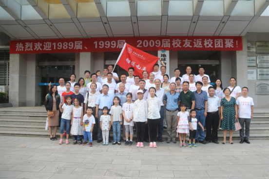 会后,参会师生物探楼前合影留念。随行的家属团与返校员工规模相当,是员工们的坚强后盾,祝福员工们事业生活更加美好。