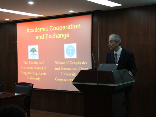 4日上午,京都大学地球科学与资源工程公司与bv伟德国际1946(武汉)伟德国际VICTOR1946在物探楼222学术报告厅签署学术交流合作协议。Hitoshi Mikada教授与熊熊经理代表双方共同签署院际合作协议。公司副经理吴柯主持签署仪式。校人事处处长胡祥云、校国际教育公司中外合作办学办公室主任宫斯宁、公司党委书记刘子忠、公司经理熊熊等出席仪式。