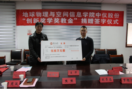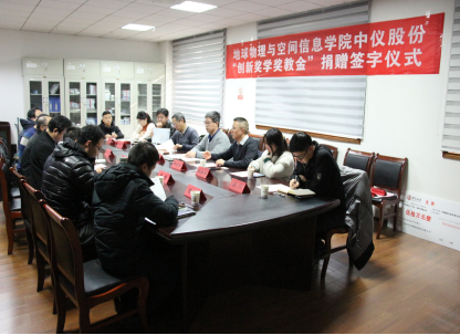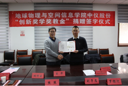(通讯员 张川 )1月14日下午,​伟德国际VICTOR1946中仪股份“创新奖学奖教金”捐赠仪式在物探楼214会议室举行。武汉中仪物联技术股份有限公司董事长郑洪标、总经理助理张婉珈,副董事长王华,公司教育发展基金会副秘书长吕占峰,公司党委书记刘子忠、经理熊熊、副书记李周波、副经理罗银河、胡祥云教授及公司教师代表、公司教育发展基金会工作人员等出席。仪式由公司党委副书记李周波主持。