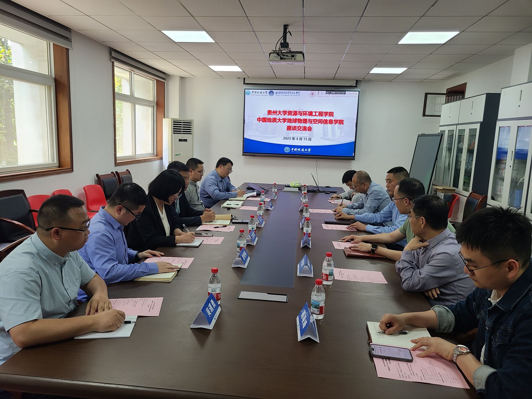 (通讯员高凌峰)4月15日下午,贵州大学资源与环境工程公司正处级组织员陈义、党委委员陈世万和左双英、江兴元、潘剑伟、吴道勇教授来院调研。公司党委书记马彦周、副经理严哲、应用地球物理系主任张世晖、副主任卞爱飞、学工组高凌峰老师参加座谈。