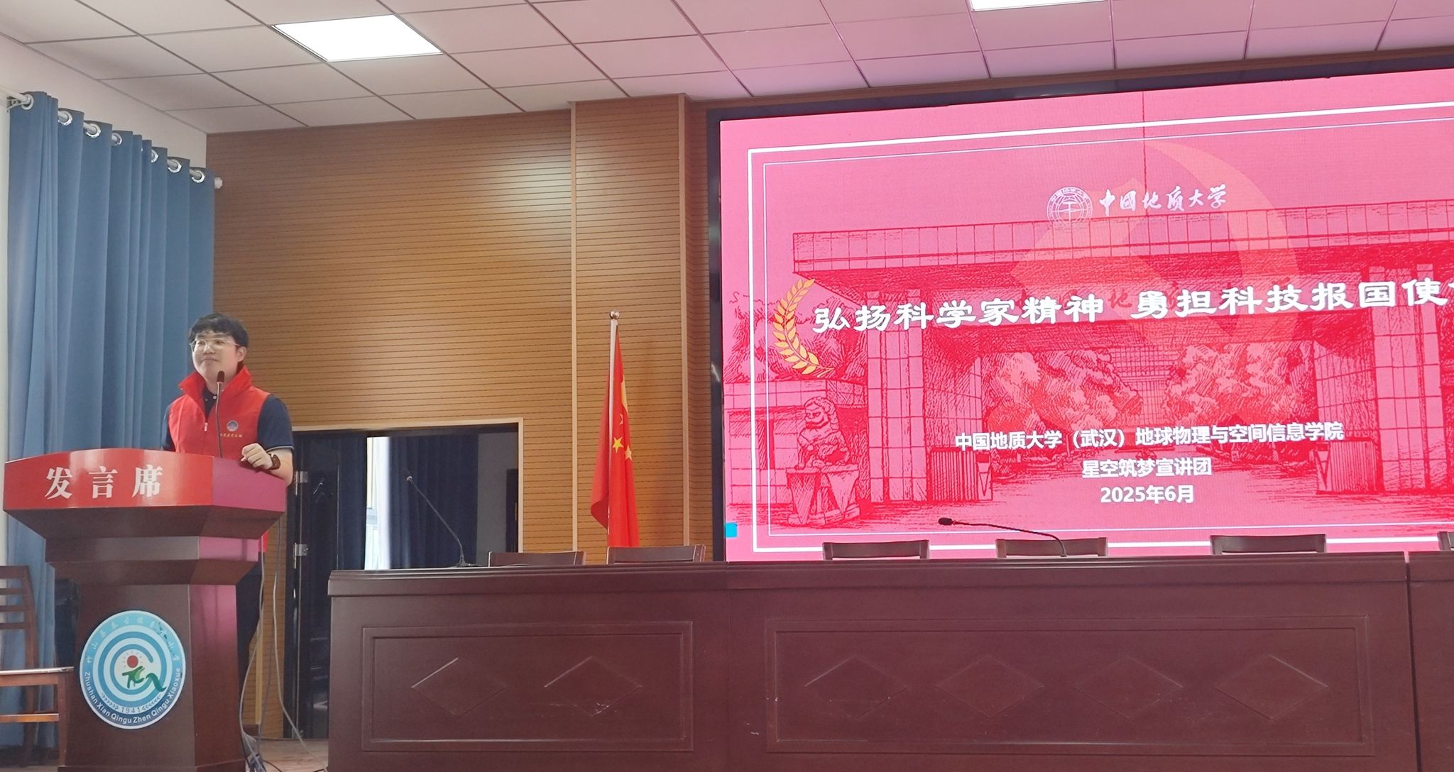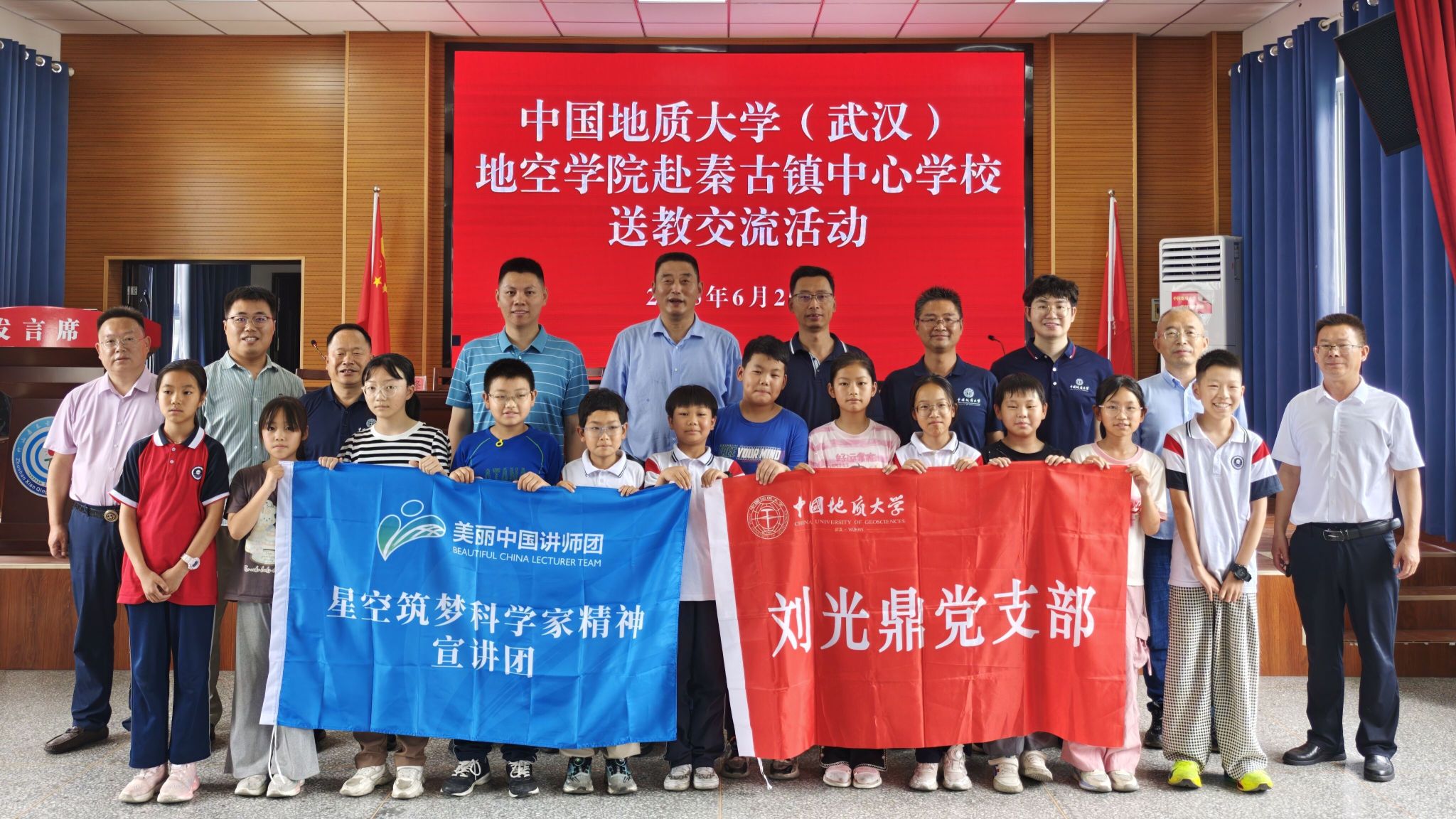 在秦古镇小学,固体系闫相相副教授为全体师生作了题为《当太阳“发飙”时——太空天气的奥秘》的科普讲座。闫老师以生动的语言、丰富的图片和案例,深入浅出地讲解太阳活动对地球空间环境的影响,激发员工们探索科学的兴趣。刘光鼎员工党支部黄润林同学通过讲述刘光鼎、欧阳自远、马永生等科学家攻坚克难、矢志报国的感人事迹,持续开展科学家精神宣讲,在孩子们心中播下科学理想的种子,激励他们以科学家为榜样,勤奋学习、勇闯科学征途,受到小学师生的欢迎。