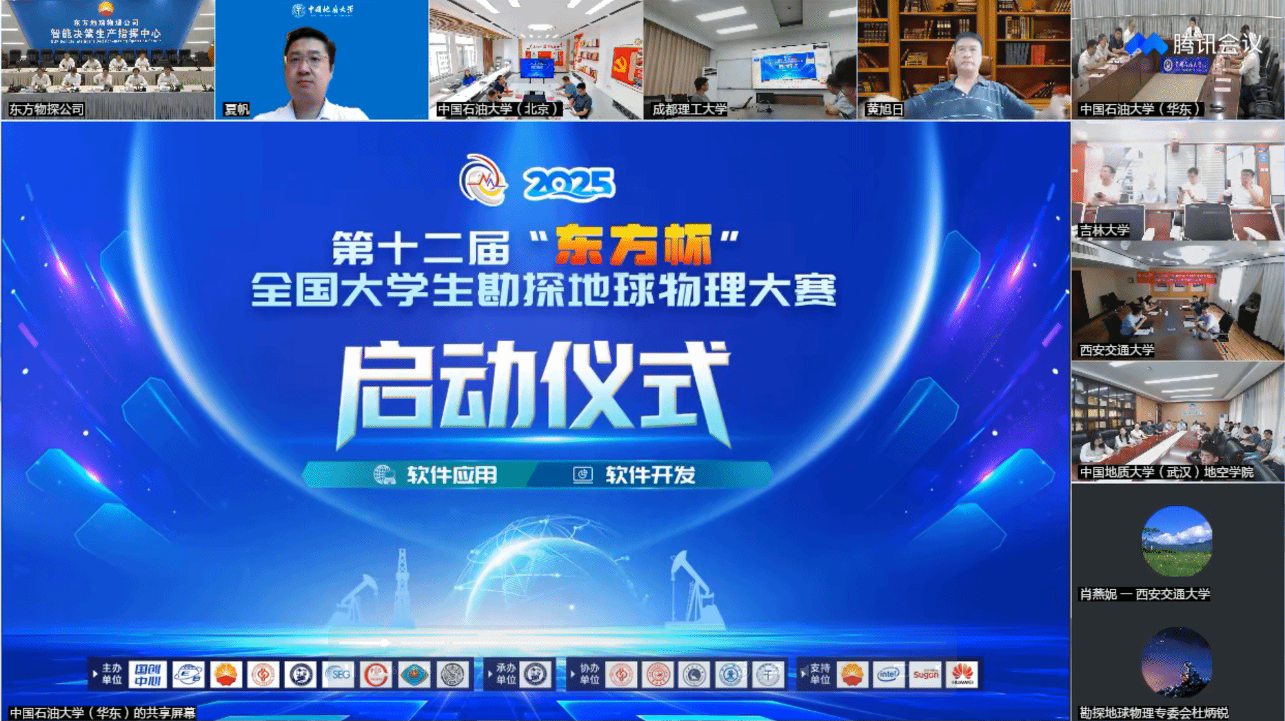 启动仪式采用线上线下相结合的方式进行,来自全国各高校的领导、专家学者和师生代表共同见证了这一行业盛事。中国石油大学(华东)、中国石油大学(北京)、bv伟德国际1946(武汉)、吉林大学、成都理工大学、西安交通大学等高校领导出席仪式并发言。