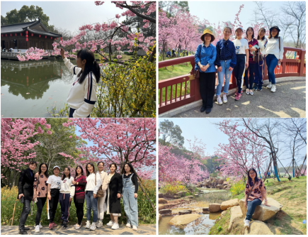 中午1点从物探楼出发,车上欢声笑语不断,大家尽情享受春天的气息和交流带来的快乐。进入东湖樱园,200余株早樱都已绽放,老师们漫步在园中小径,穿行于树林行间,淡淡花香弥漫,美好的春意定格花、景、小桥、亭阁间。